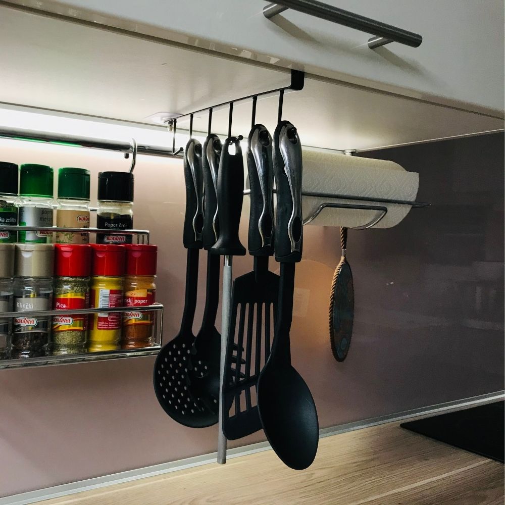 A mérőpoharaim és kanalaim szépek és színesek, ezért szeretem, ha szem előtt vannak. Egy kis, otthoni sütőipari vállalkozásom is van, így praktikus, ha az eszközeimet könnyen elérem. Könnyű volt felszerelni.